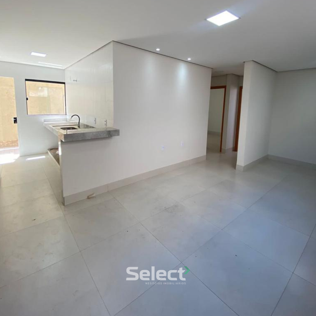 3 quartos sendo uma suíte, banheiro social, cozinha americana com área de serviço, sala para 02 ambientes, 01 vaga garagem.