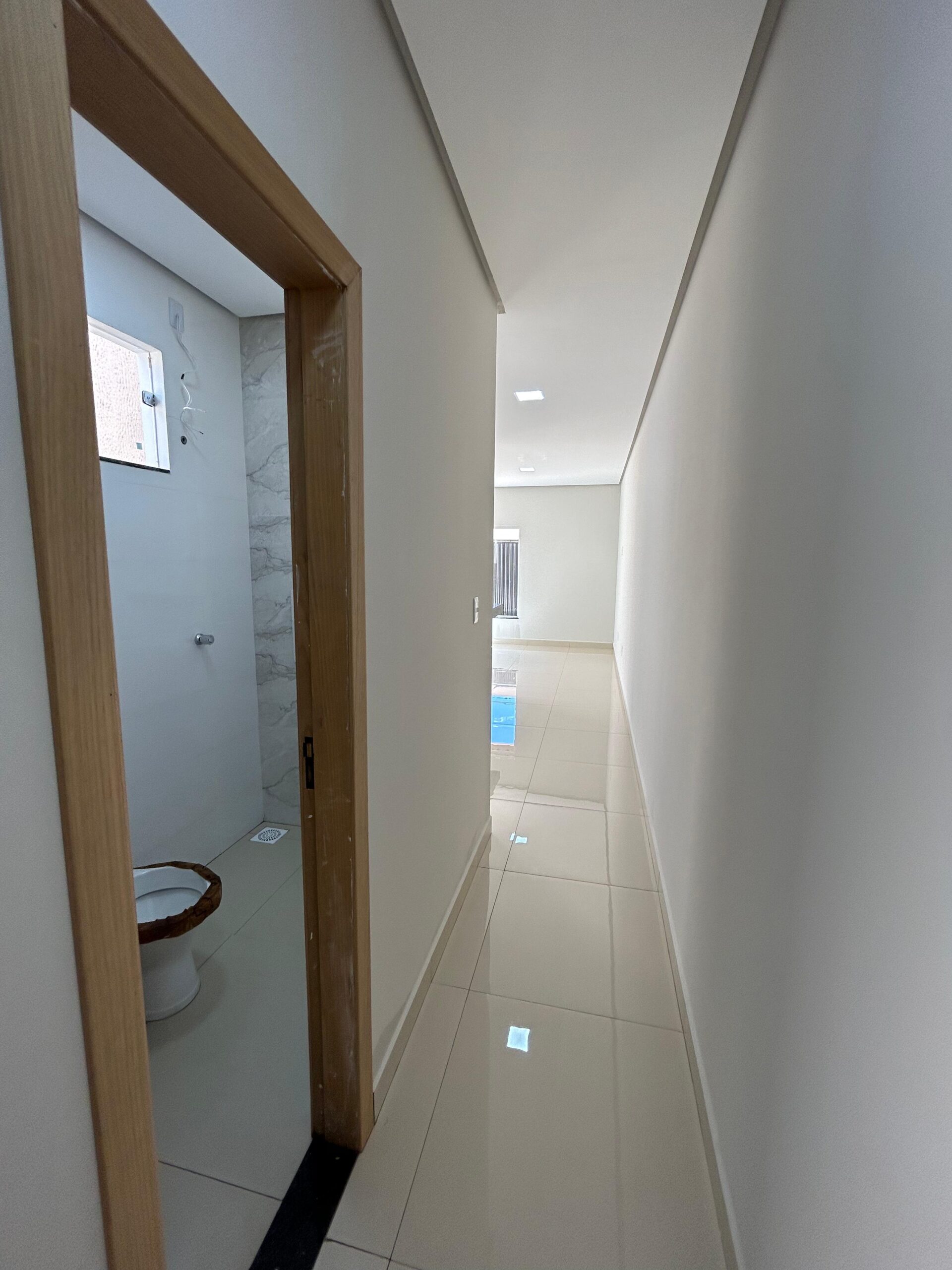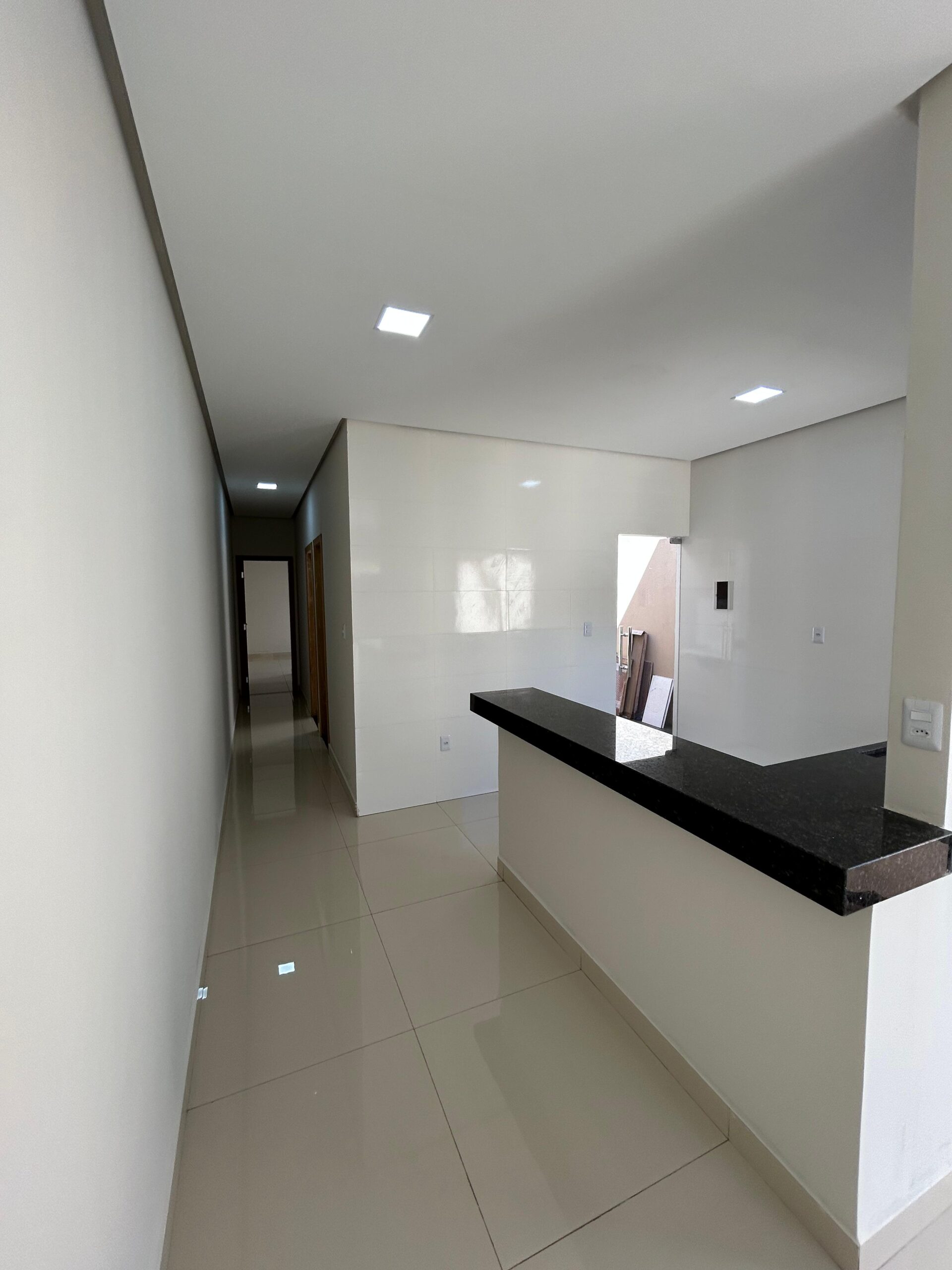 O quintal nos fundos oferece espaço para construir uma área gourmet ou um quarto adicional. A casa possui uma garagem e uma fachada moderna.